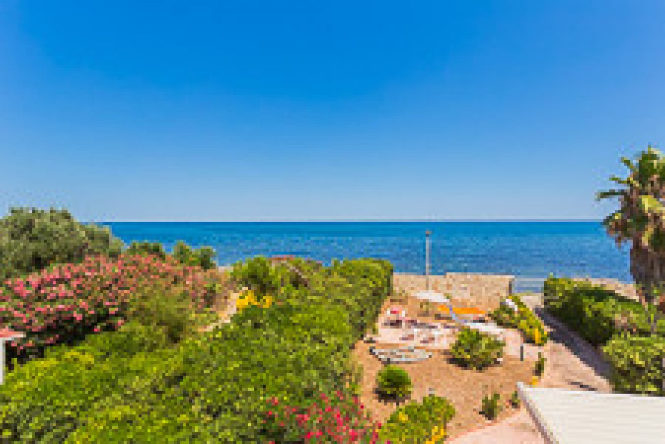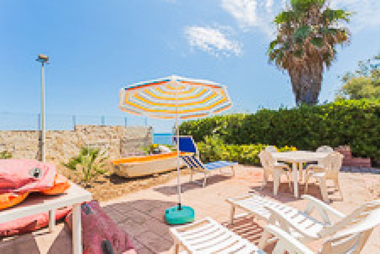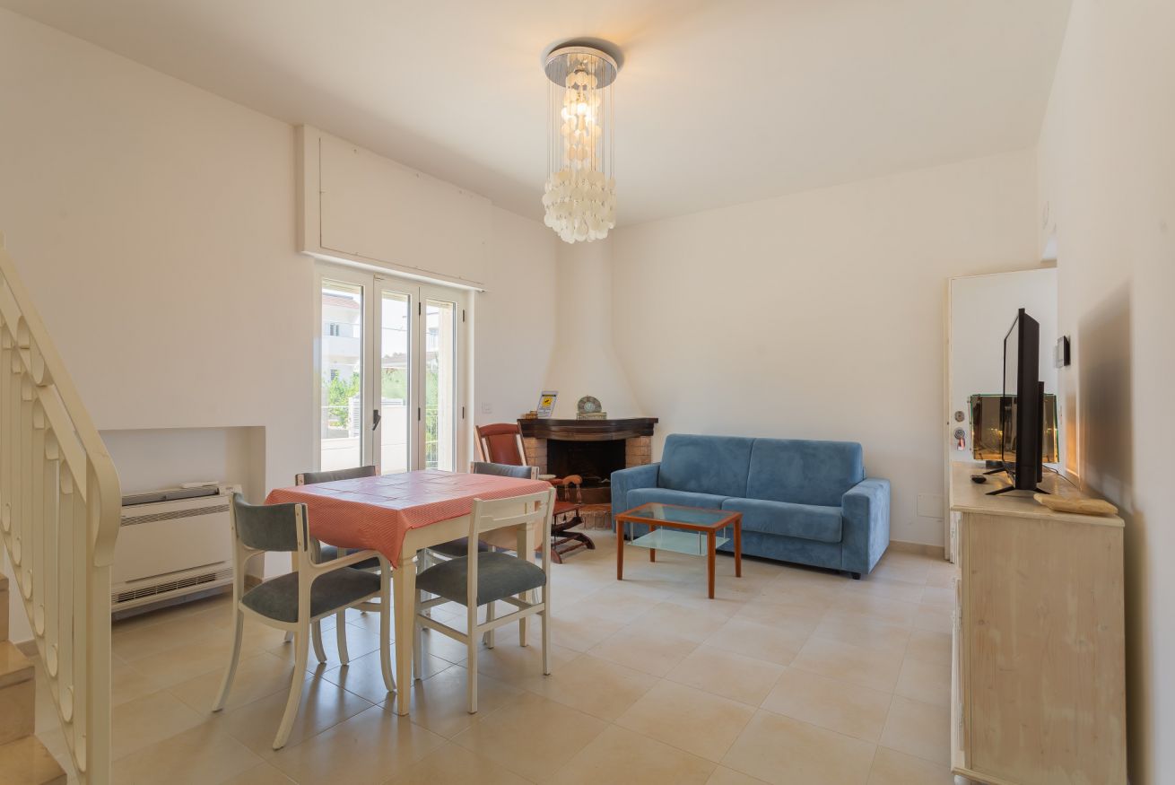 villetta con giardino posto macchina accesso a spiaggetta rocciosa, disposta al piano rialzato con living, divano letto a due posti, cucina completa di forno, microonde, lavastoviglie piano cottura a induzione, frigorifero; bagno completo senza doccia primo piano due camere letto doppie 1 bagno completo con doccia, balconi