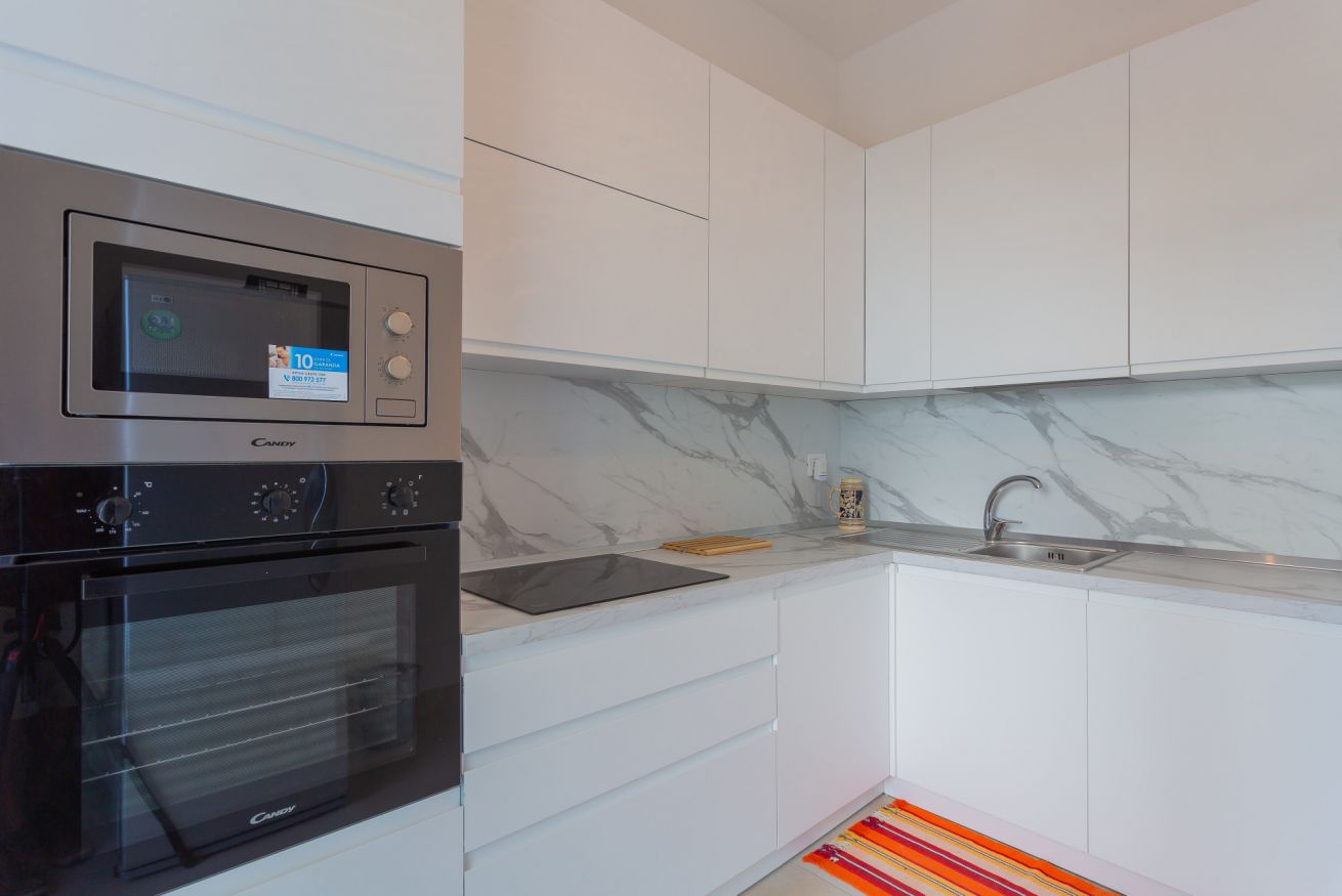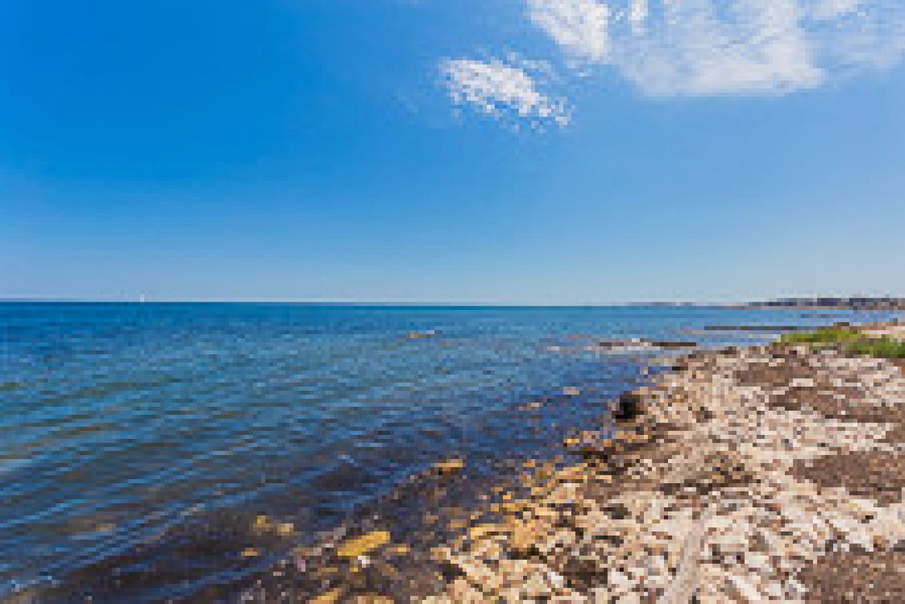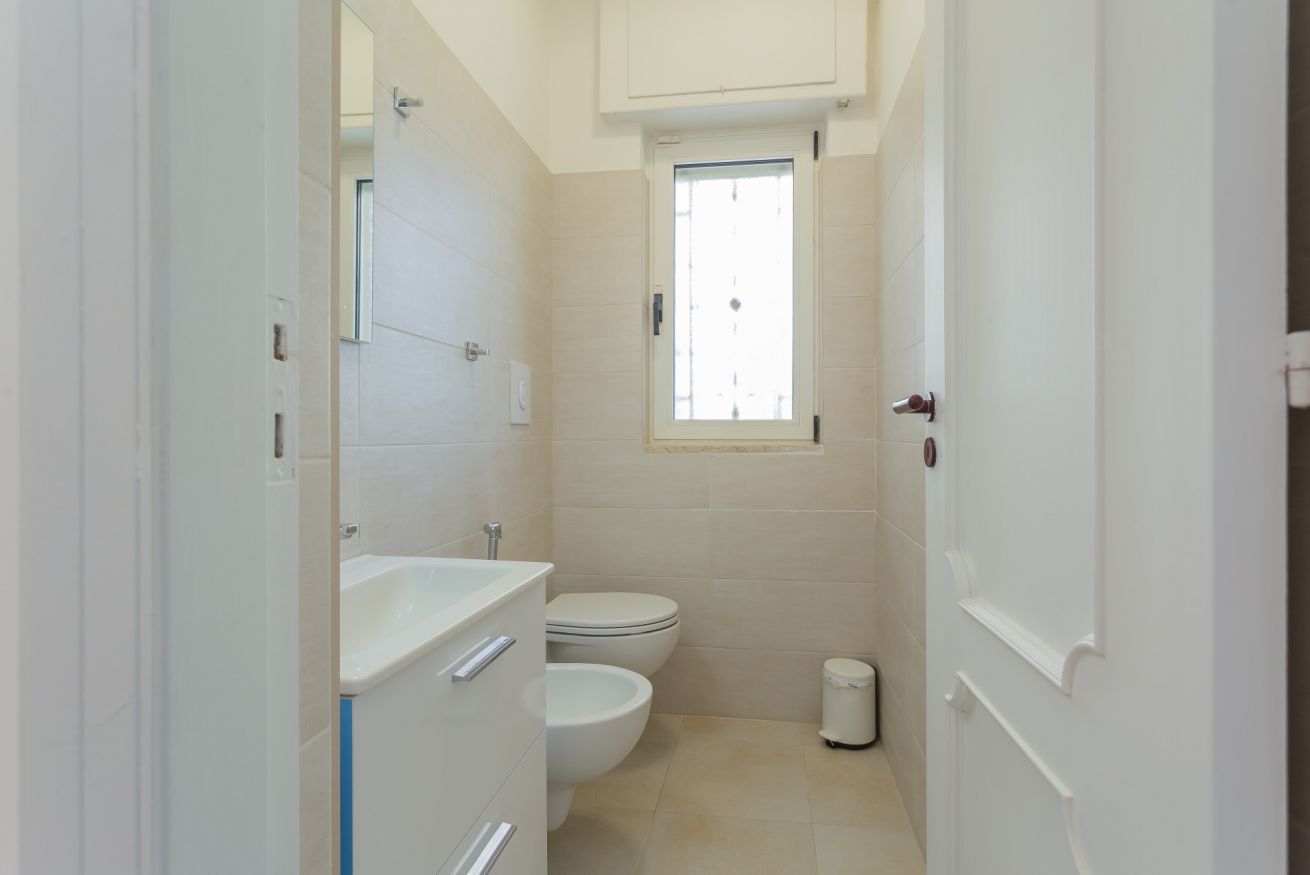 villetta con giardino posto macchina accesso a spiaggetta rocciosa, disposta al piano rialzato con living, divano letto a due posti, cucina completa di forno, microonde, lavastoviglie piano cottura a induzione, frigorifero; bagno completo senza doccia primo piano due camere letto doppie 1 bagno completo con doccia, balconi